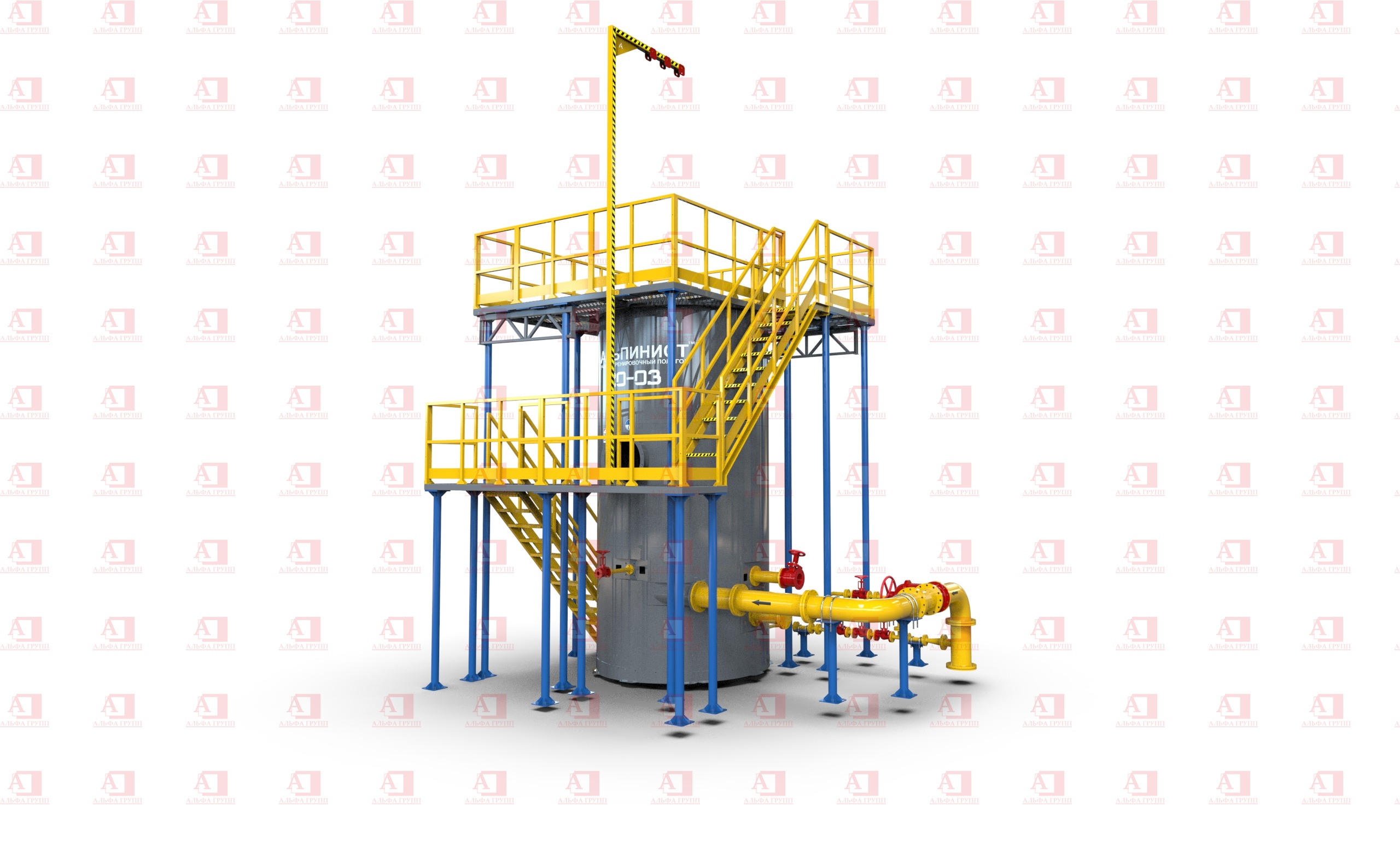 Доступ на рабочую площадку второго уровня осуществляется по стальной маршевой лестнице.
